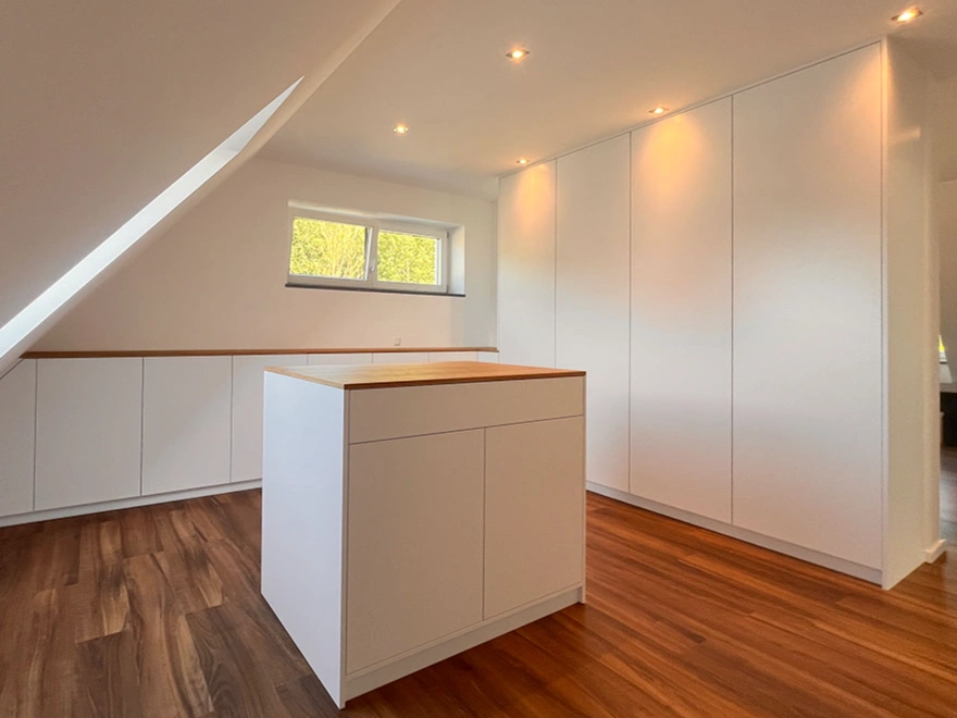 - Breites Portfolio: Ob Garderobe, Ankleidezimmer, Dachschrägenschrank, Arbeitszimmer, Terrassen oder TV-Möbel - als Schreiner:in realisierst du maßgefertigten Stauraum.